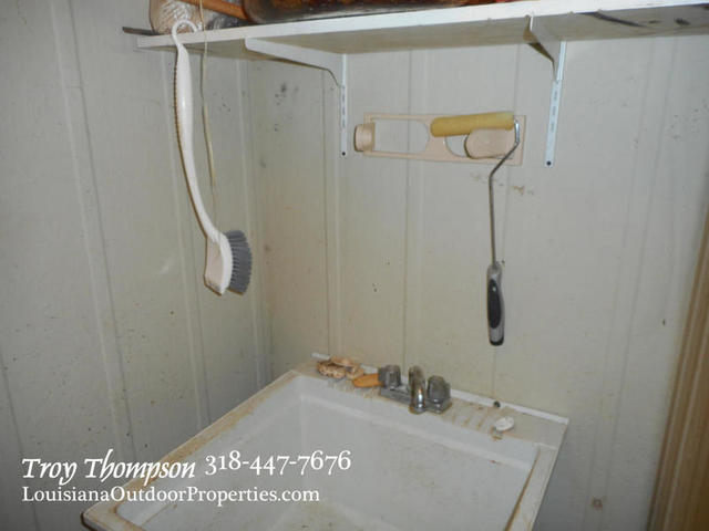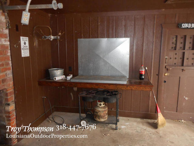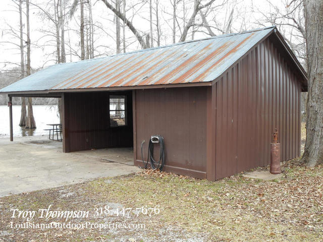 Right next to the cabin is a 39’ by 16’ shed that has a carport, outdoor kitchen, ½ bath and fireplace set up for pig cooking. It also has washer and dryer hookup in place and an electric cooktop. Some furniture and all the appliances in the camp will stay. This place is walk in ready! Bring your boat, fishing pole, and gun and get started enjoying bayou living. The cabin is an excellent camp or even a great home for a single person or couple. The lot is approx. half an acre. Asking price for all this is $116,000.