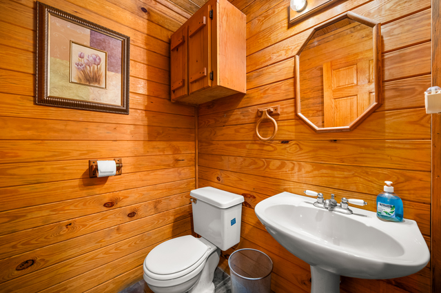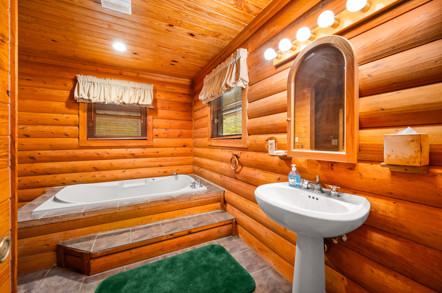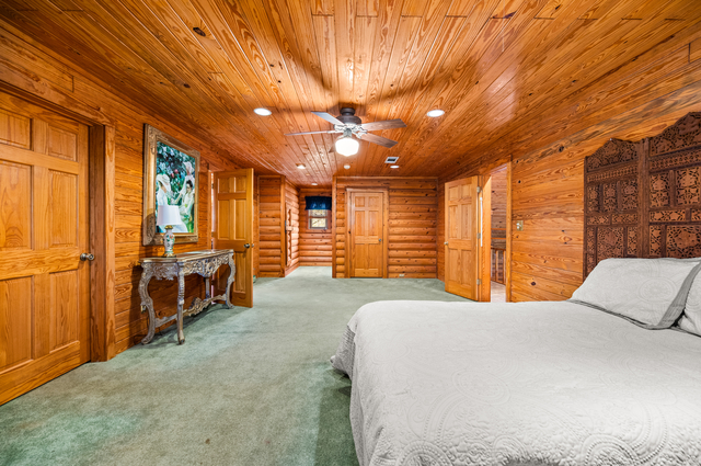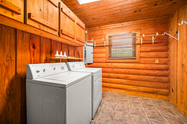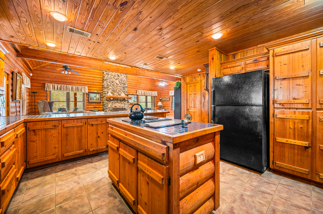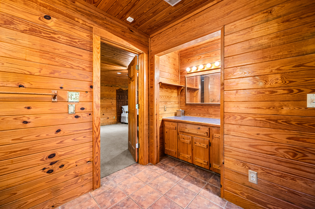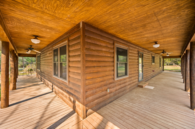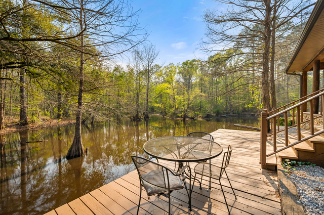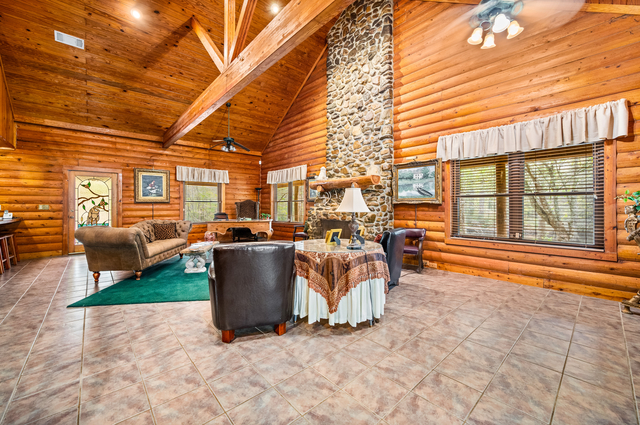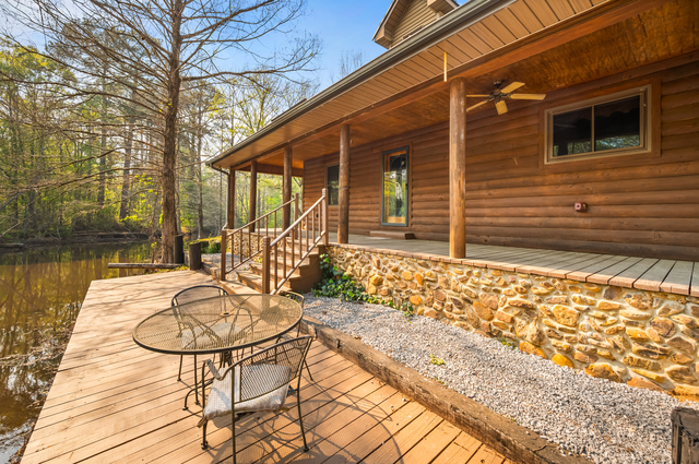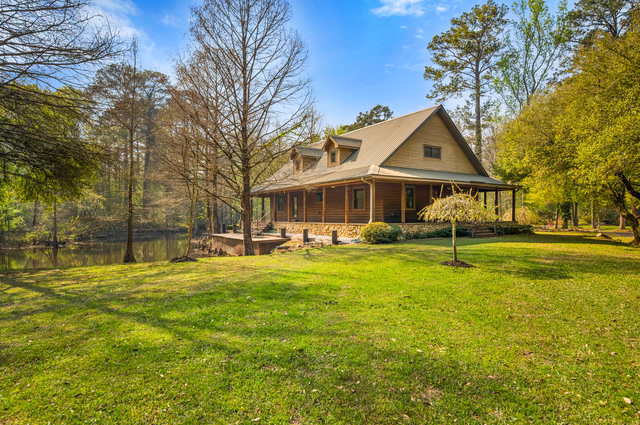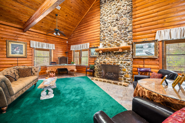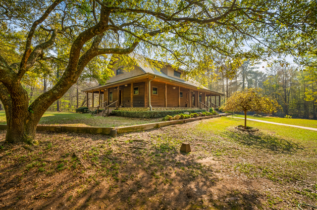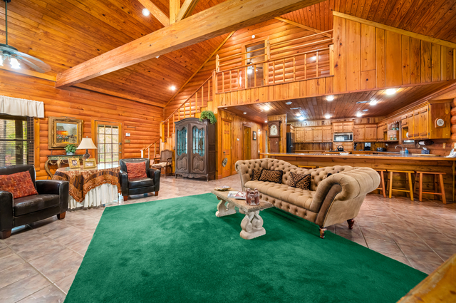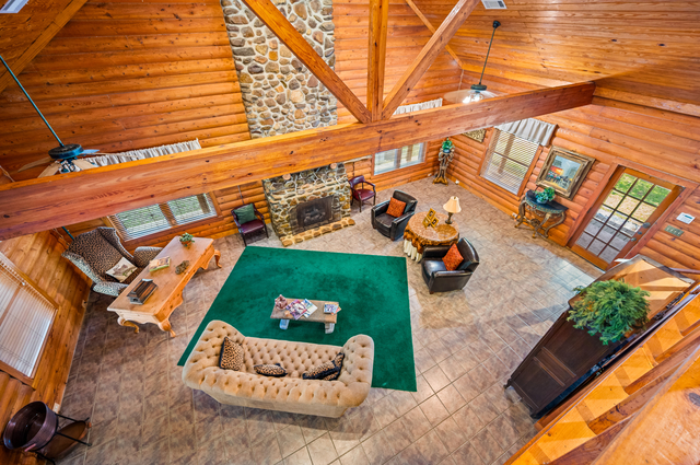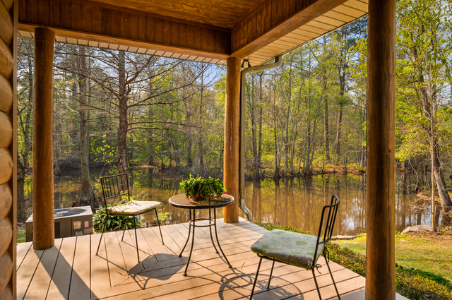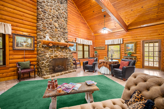 Custom 2,305± square foot cabin featuring two bedrooms 2 ½ bath open floor plan with cathedral ceilings, stone fireplace, Pecky Cypress, and porches wrapping around the home.