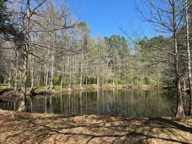 30 acres beautifully landscape with stock pond surrounded by the Kisatchie National Forest.