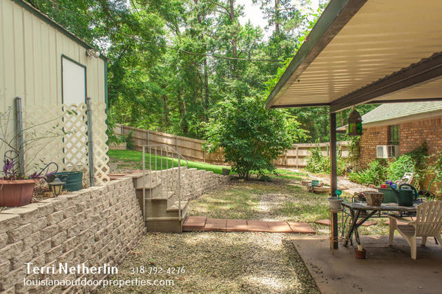 Spacious 2500 +/- square foot, 3 bed, 2 bath home on beautiful corner lot in the prettiest area of Pineville, with abundant shade provided by numerous trees on this almost 1 acre lot. The privacy fenced back yard boasts a 16 X 32 metal shop with both walk through and roll up door, as well as 28 x 15 covered patio. This large home has over sized bedrooms, with 2 separate walk in closets in the master suite. A bonus room off master is perfect for nursery or home office. Both baths feature separate vanity areas.