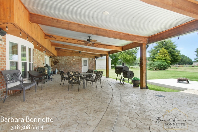 1,000 sq. ft. Stamped Concrete Exposed Cypress beam covered patio