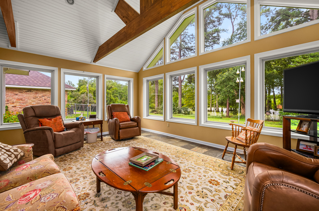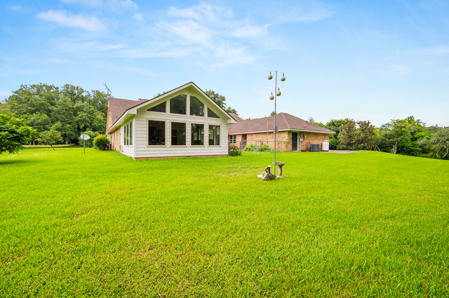 One of the standout features is the glassed-in back sitting area — perfect for soaking in the stunning views of a pristine cypress break. Enjoy daily visits from wood ducks and deer that wander right into the yard, creating a private, nature-filled backyard.