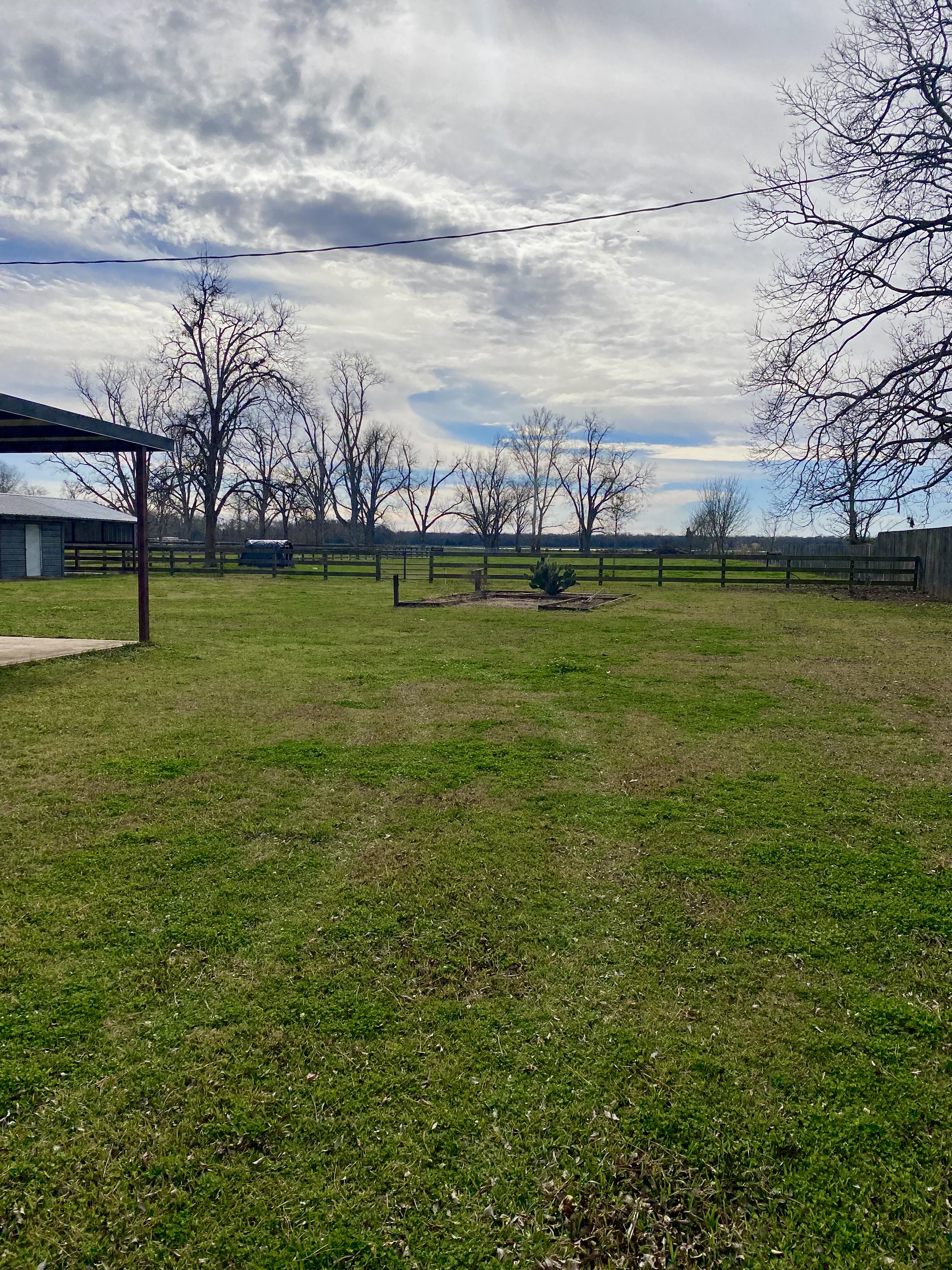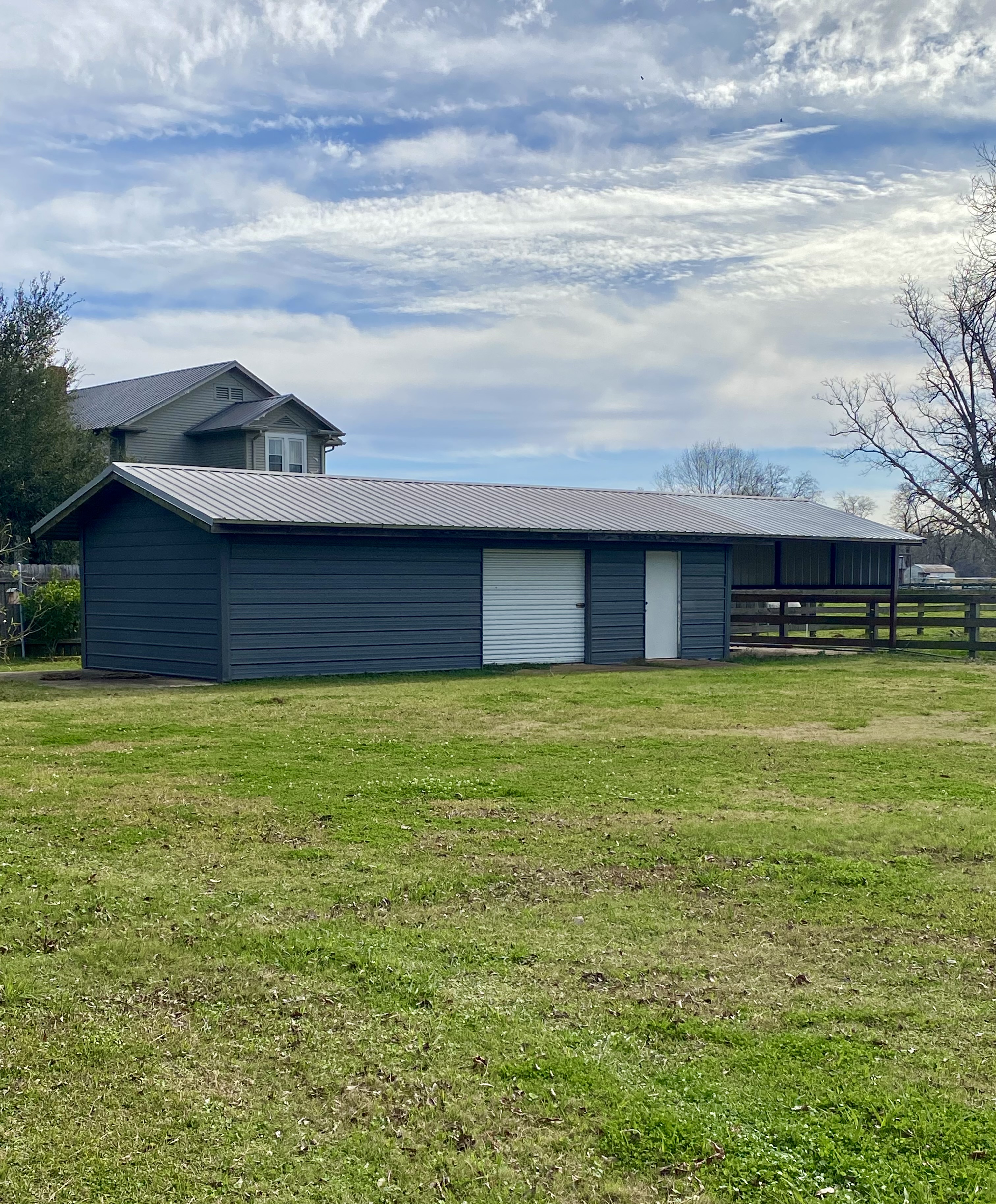- 2.86 acres of land with partially fenced pasture and a small metal barn/shop for storage
