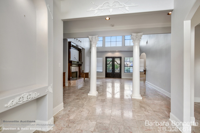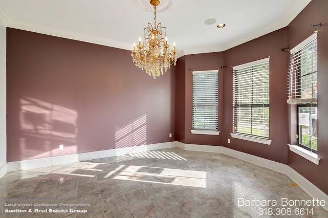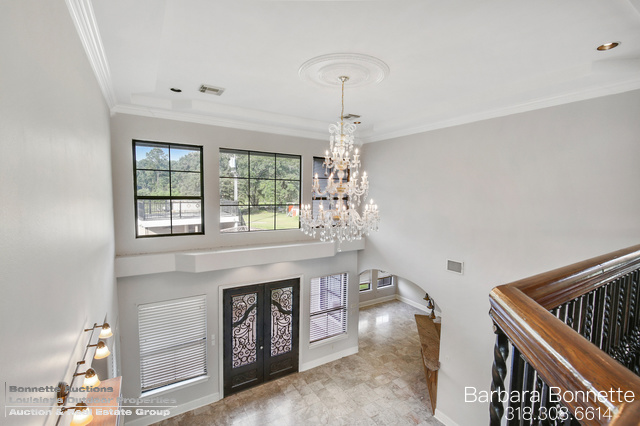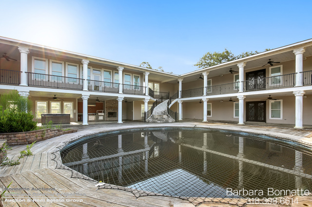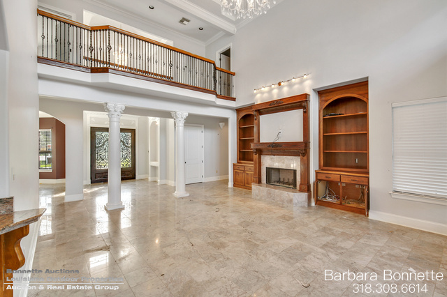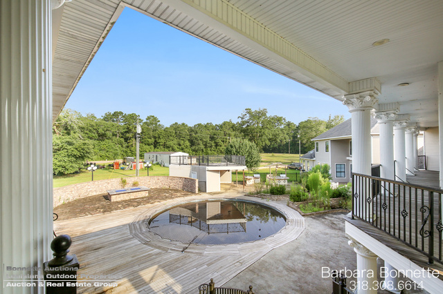 Stunning custom home on 4 acres, hardy plank exterior, marble tile, & hickory wood flooring. 6" baseboards, 8" doors, grand floating wrought iron staircase. beautiful cabinets & granite counter tops. Grand master suite with tray ceiling, sitting area & fireplace. Master bath boasts double headed shower and soaker tub. 6 bedrooms, 4.5 bath, outdoor kitchen, covered patio, gym, and 3780 sq ft Guest house, 2800sf metal workshop, 400sf storage building