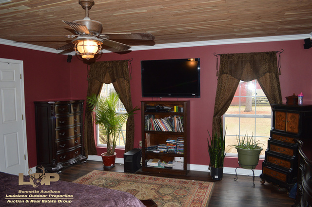 Come to the country and relax! Home on 27+/- acres overlooking a stocked pond. 2,400 sq.ft. featuring 3 bedrooms, 2 baths, tile floors, 2 car carport, pool, and barn. Property is located at 1968 Beaver Road, Ville Platte, LA 70586. Asking price is $270,000.