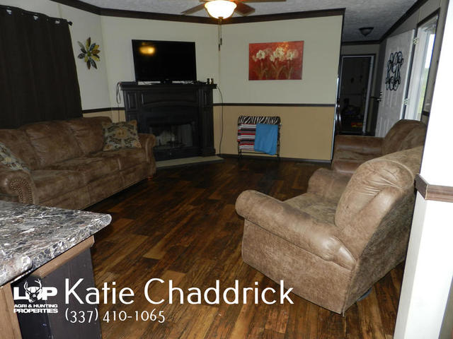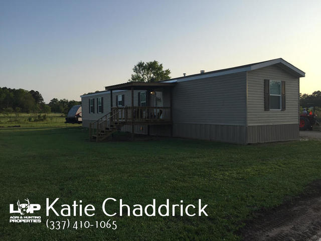 Custom 2015 three bedroom two bath single wide home for sale in Pine Prairie. This property is located 11532 Memorial Highway Ville Platte, LA 70586. Bayou Chicot/Pine Prairie school district. Minutes from local amenities as well as being very close to Crooked Creek Recreational Area. Property sits on 3 acres two of which are fenced in for animals and also has a pond. Huge 25′ by 50′ patio/carport combo and nice front porch. List price is $87,500. Contact Katie Foreman Chaddrick at 13374101065.