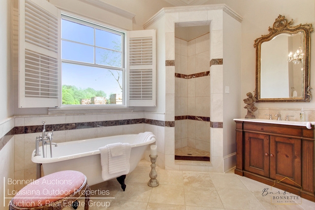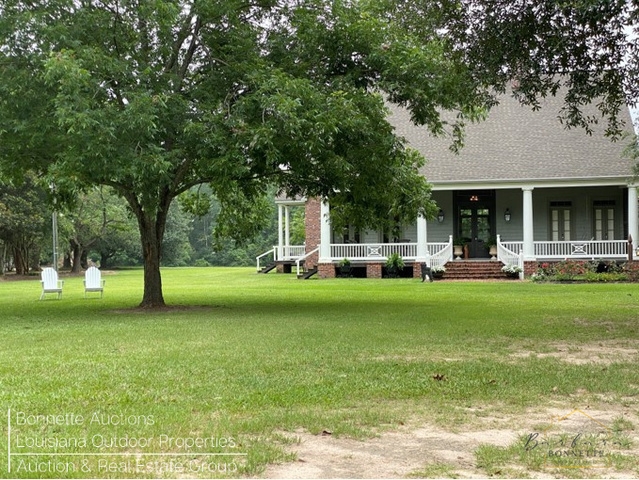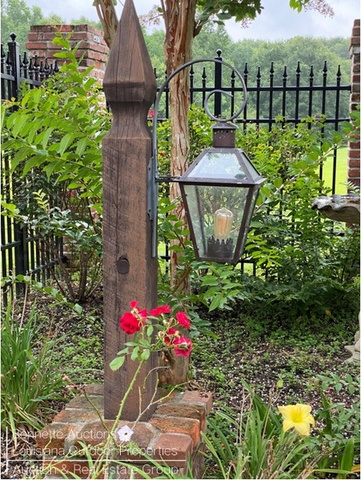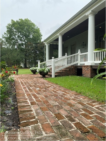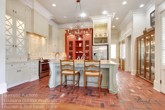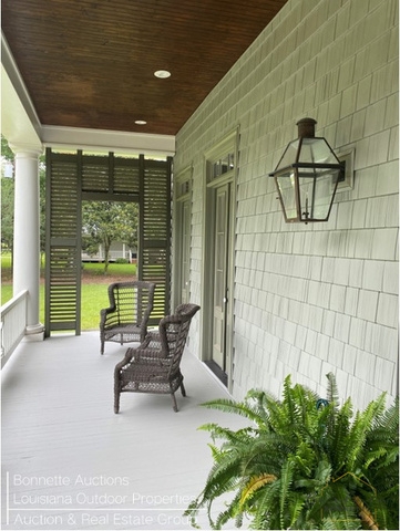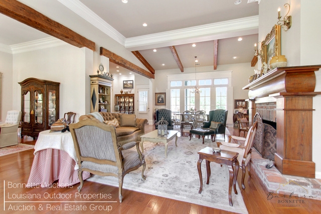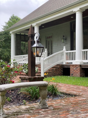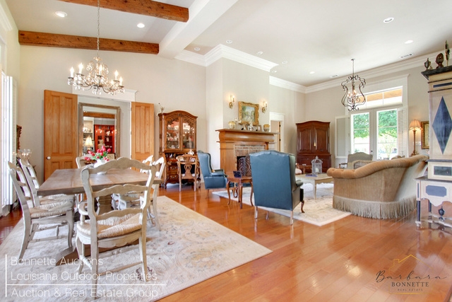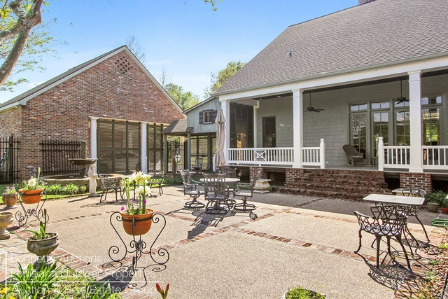 Stunning 3 bedroom 2.5 bath custom home on 3 acres. Gorgeous porches when you walk up to the front door. Beautiful chandeliers and mantle made out of 100 year old pine wood. Hardwood floors throughout the home with 14 feet ceilings and exposed antiqued wooden beams, formal dining room with triple layered crown molding. Chef’s kitchen has beautiful brick floors, stainless steel appliances, custom counter tops and custom cabinetry by Glen Armand. Tons of natural lighting throughout the home with plantation shutters on all the windows and doors. Master bath has a custom shower with marble and limestone, claw foot tub and custom vanities. There are so many extras in this home including: porcelain door knobs, interior wood custom windows, on demand hot water heater, custom landscaping, sprinklers, board and batten ceilings on all porch ceilings, custom handrails, gas lanterns, landscaped courtyard with fountain, and crape myrtles (an A. Hays Town signature), commercial grade iron fencing with brick pillars, 2 car carport with storage area. The house has approximately 2,569 square feet heated and approximately 4,359 square feet total under roof.