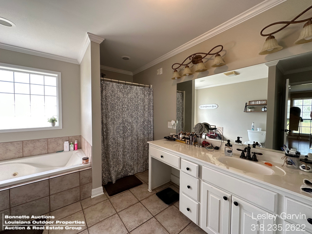 The master bedroom features a small office/nursery/work-out area just off to the side-perfect for a small business, brand new baby, or small gym. The master bath has large jacuzzi tub, shower, double sinks, and linen closet.