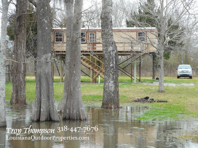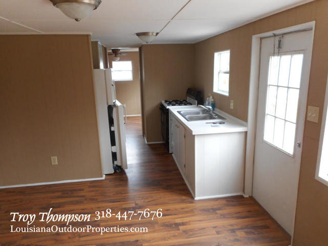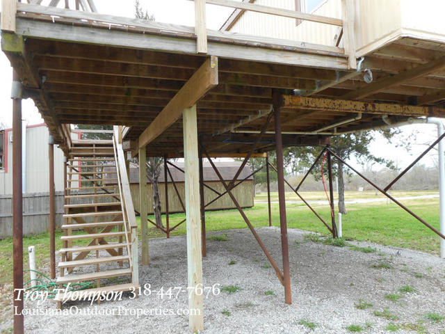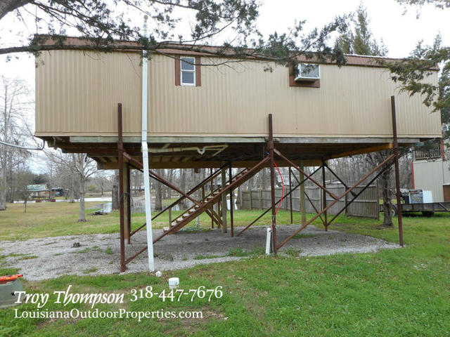 Located at 230 River Lane in Marksville, La. is an excellent camp ready for all your hunting and fishing adventures. Little River is part of the Spring Bayou Complex and is a short boat ride away from Spring Bayou WMA and over 12,000 acres of hunting and fishing opportunity. This camp is ready to go and the refrigerator and stove and air conditioner will stay. There are two bedrooms and one bathroom and an open kitchen/living area for a total of 432 sqft. There is a large deck on the front of the camp that is 11.5’x32′ and the whole thing is elevated on metal pipe with room to park a vehicle under. There is new laminate flooring inside along with fresh paint. The sewer treatment plant also has a camper hookup and the electricity and city water just need to be turned on and the camp will be ready to go. A boat slip has been dug into the property from Little River and makes it easy to get to your boat. All of this is on approx. ½ an acre of land. Marksville is minutes away for all your shopping, dining, and entertainment needs. Asking price is $40,000.
