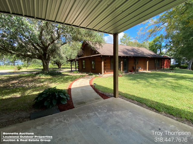This amazing waterfront property, located at 2051 Rock Rd, Sicily Island, La., in Catahoula Parish would make an ideal camp or home. Sitting on 1.8+/- acres, with 200+/- ft of water frontage, with approx. 200’ having a wooden bulkhead, the property consists of a beautiful log main home, a spacious outdoor kitchen that is great for entertaining, a metal building shed on a slab, and a wooden cottage/mother-in-law quarters with bath house. The log main home is 2BR 2BA with over 2500 sqft under roof and 1400 sqft of living area, two vehicle car port, and has cathedral ceilings in the living area, brick pavers in the kitchen and living area, and granite countertops throughout. The outdoor kitchen, which measures 30’ x 24’, has 22 windows for great views of the water and property. It sports a full kitchen, a 30’ x 14’ porch with propane hookup from main tank for a BBQ pit or crawfish burner, and fish cleaning station. Right next to the house is a 30’ x 24’ garage/boat storage metal shed on slab with roll up and walk through door which is insulated and has electricity. The wooden one room cottage needs some finishing on the inside but could make an excellent guest room or mother-in-law quarters, and the separate bath house has a full bathroom for its use. The property has a lawn sprinkler system and its own private concrete boat launch, so you don’t have to leave your property to launch. This spacious property also has the potential to produce income via main home vacation rental (such as Air BnB or VRBO) and the rental of the cottage and bathhouse. This quiet country setting would make a great home place or getaway.